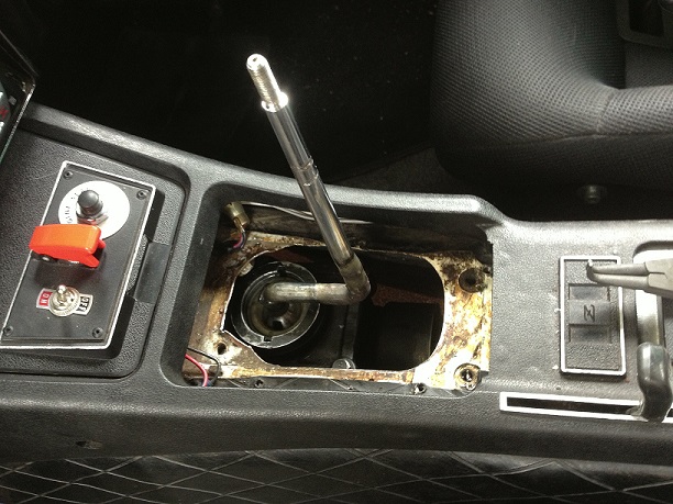 Riceburner Posted February 27, 2014 Posted February 27, 2014 My car was originally an auto. With the console out just measure back from the shifter 'ears' on the gearbox and stop when you are in the centre of the trans tunnel opening. You'll end up with something like the pic below. It's easily done with an oxy torch, or cut and weld. You can use the stock Nissan rubber inner boot and the pleather outer boot I liked it so much I used the same stick on my RB box, but I had to weld the RB ball onto the bottom of the Z stick. EDIT: The trans tunnel was shaved a tiny bit when fitting the RB20det box. Quote