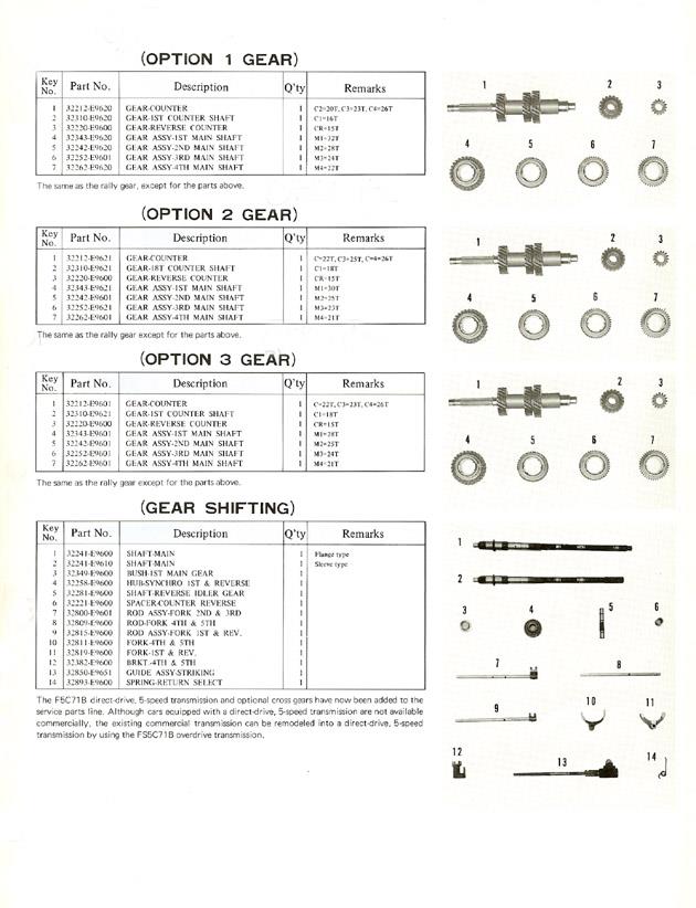 dat2kman Posted March 12, 2014 Posted March 12, 2014 Hodgo, can you possibly message me a decent high res scan of the page showing the pictures of the gears and their corresponding ratios/tooth counts, thanks. Also, What is the shift pattern on your various option boxes? Have heard various, depending on wether it was a proper factory box, or, some XXX company gearbox modifier, ie Albin/Holinger/etc First to left then either up or down,,, or first to far right then up,?? Gears 2-3-4-5 always in the H pattern I have some internal pics of the Holinger version that is in the Y, bit odd, it is full synchro on first, which is where fith would normally be, ( reverse is same position) but it has dog engagement on 2.3.4&5, in place of synchros, tooth count is odd too, it's a combo of Opt2 and Opt 1, George stipulated to Holinger, exactly what he wanted! Quote
