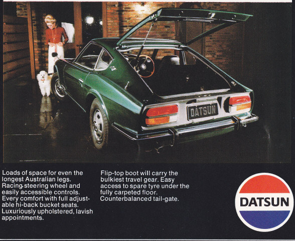 Administrators gav240z Posted September 2, 2013 Administrators Posted September 2, 2013 Lynton thanks for posting those images, in particular the Green 240z. I recall seeing that same sales brochure at Len Brennan's place about 6 or so years ago and he was talking about how exciting it was to buy a 240z back then, he said there was nothing like it for that price range. I recall seeing that Green 240z and thinking wow look how original it is, not many like that anymore. Also wanted to post to say the topics have been split. So you may carry on discussing early car features and differences to later imported vehicles. +1 to grey colour grille, my 73 (a very original car) had a grey grille. Keep in mind those photos of HS30-0004 were taken back in the 90s when digital cameras were pretty poor and or you scanned photos onto your computer. I think 1 of them is in .gif format, which is not an ideal format for an image (it would suit a wiring diagram perfectly) but not something with complex colours like a photograph, much better to use .jpg that's why it looks so choppy and the colour range is all wrong. FYI: HS30-0004 was actually 905 red! I managed to confirm this. Quote