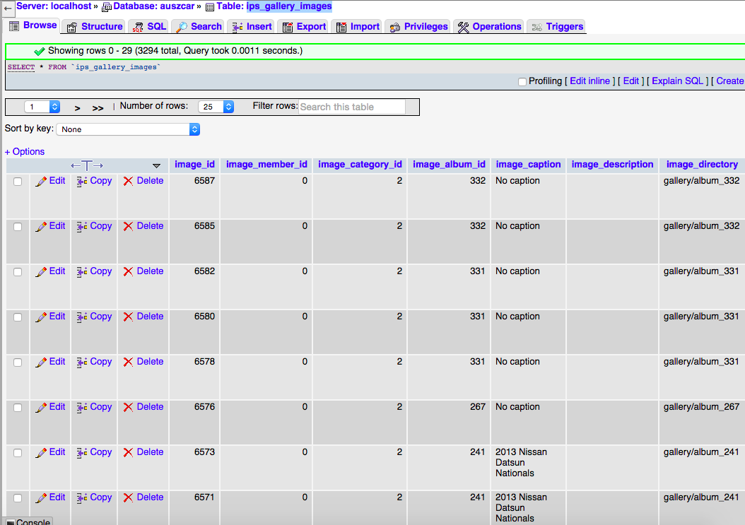Administrators gav240z Posted July 15, 2015 Administrators Posted July 15, 2015 Thanks Andy, Just so you can see the progress. You can see most album's now have an associated owner. Also you can see that the images inside these albums are now associated with the correct owner of the album. You can see that "new album" or "240z" or albums of a very generic nature are missing references, this is because there was no other unique key (or foreign key) I could use to match the owner with an album, at least not without a lot of work. I'll manually update these later so they have the correct owners etc.. Now I have to figure out why the comments are not displaying below images. I can see the entries in the table, but there is something else preventing the comments being displayed. I think it's a count in the images table... Quote