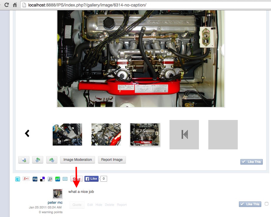 Administrators gav240z Posted July 18, 2015 Administrators Posted July 18, 2015 So I figured out why comments are not showing... Turns out that during the migration process the comment, it's date stamp, it's author and author id were all correct, but the image id referenced somehow got modified and the image id is out of whack. I've tried to see if there was any pattern to this modification but so far the numbers are all over the place. I can't work out why. I was hoping a pattern would allow me to apply 1 single statement to update them all to the correct image_id but at the moment I'm doing it manually (all 500 of them). Which is a pain in the arse no doubt but it works. Here is an attached example showing the comment appearing under the image correctly. An arduous task but I'll just do it in batches of 50 over the next few days (to save my sanity). Quote