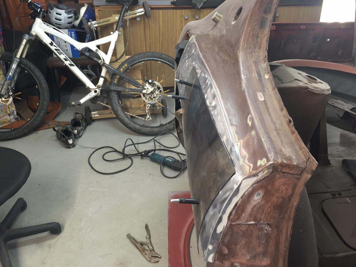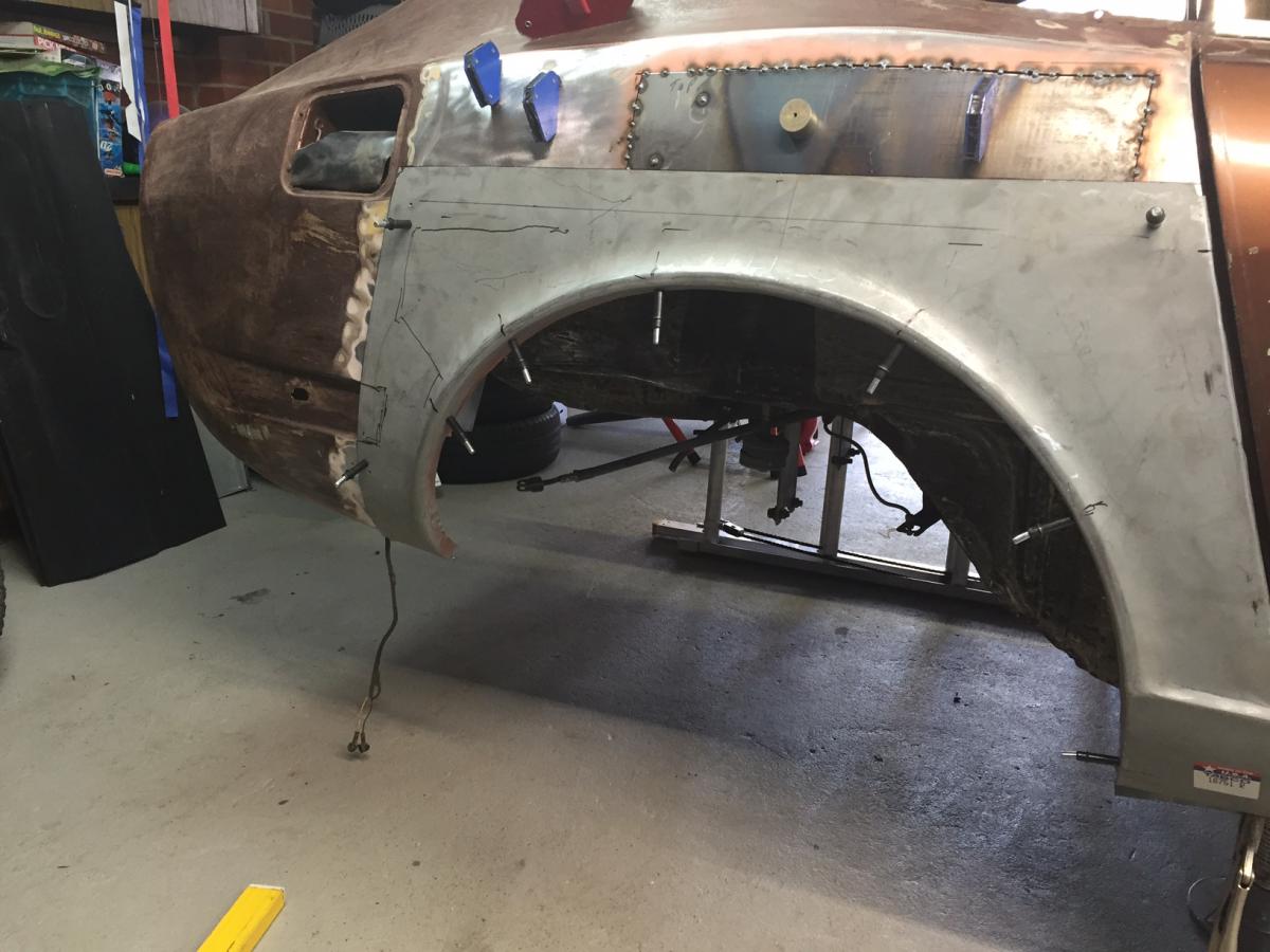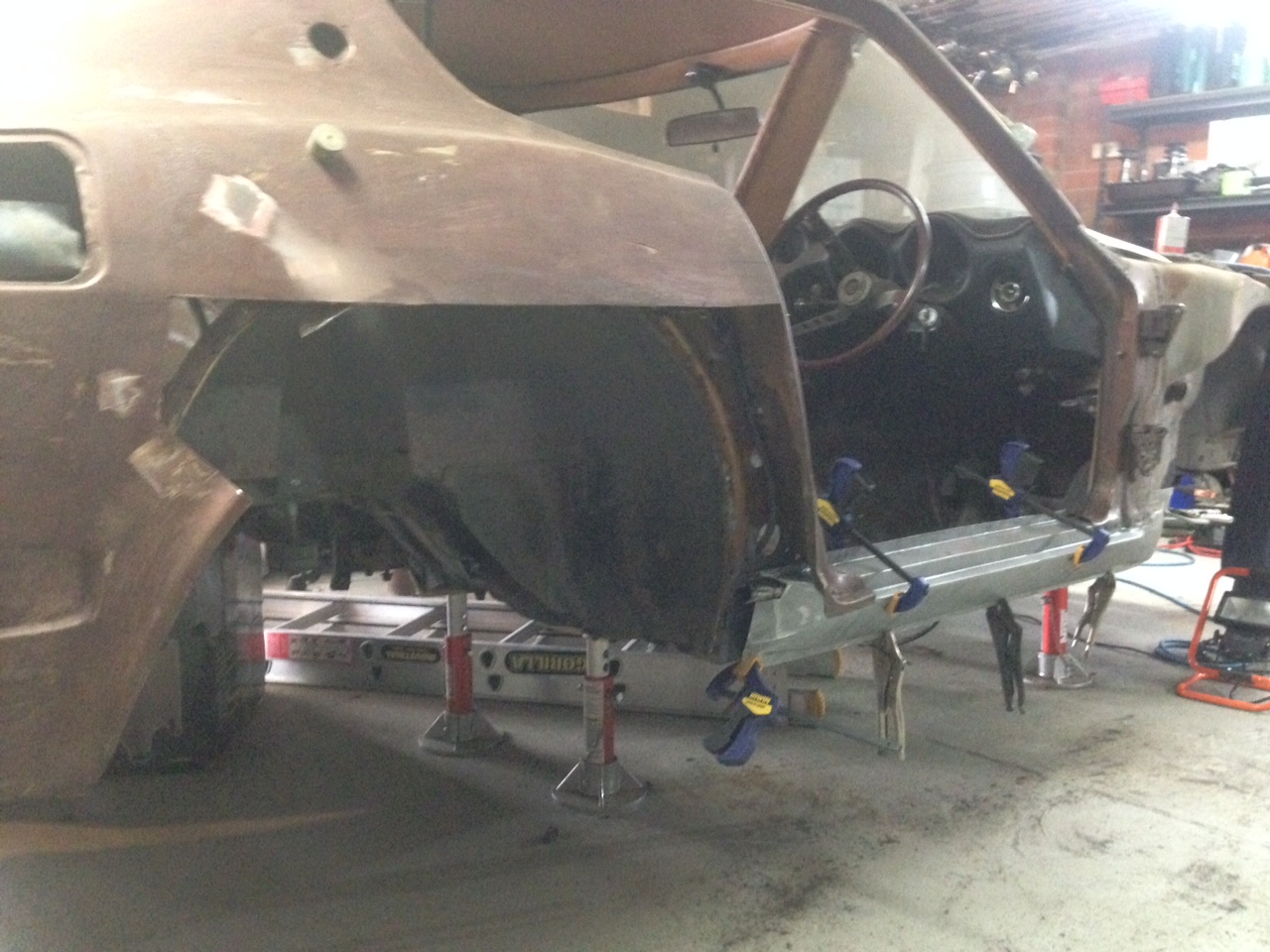 CBR Jeff Posted August 20, 2015 Author Posted August 20, 2015 I managed to spend a few hours in the shed this afternoon. So I am getting back on track I welded a few strengthening pieces in place at the front and back of the drivers side door rail that had previously been manufactured and painted. These were needed as the rust in these two areas was particularly bad so I had to cut a couple of bits out and replace them. The seat belt mount was a bit of a worry but I have a plan that involves both sides of it that should sure up this important section. So after some cutting welding hammering etc and The drivers side inner guard, outer rear quarter repair section and sill are all test fitted. Nothings permanent yet but it all lines up sort of. Quote