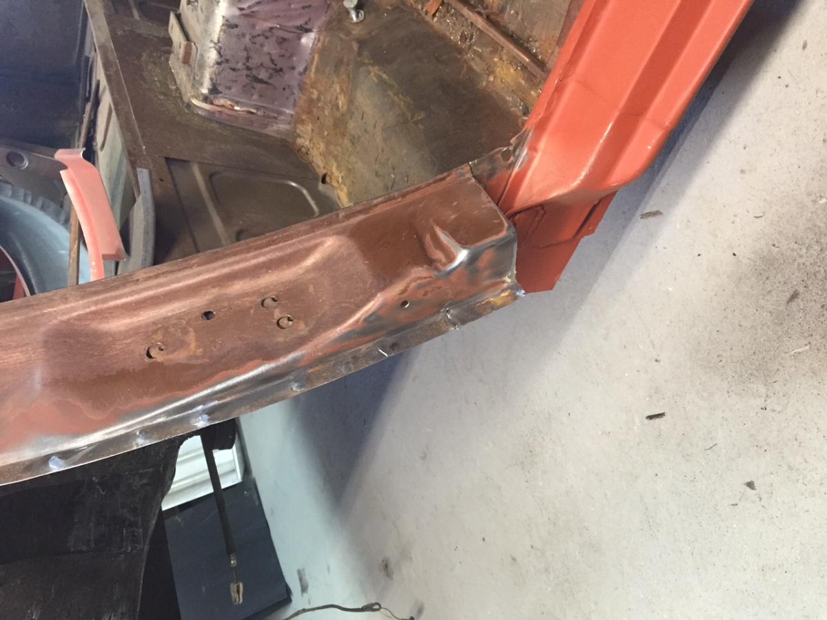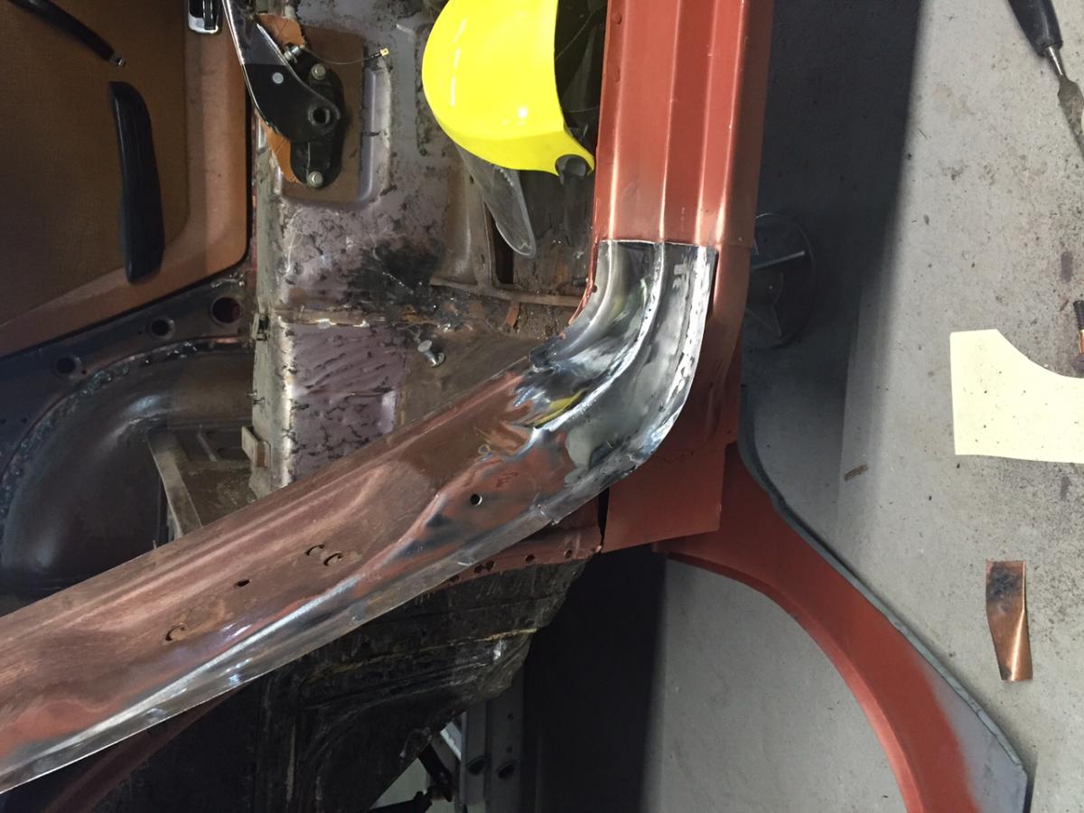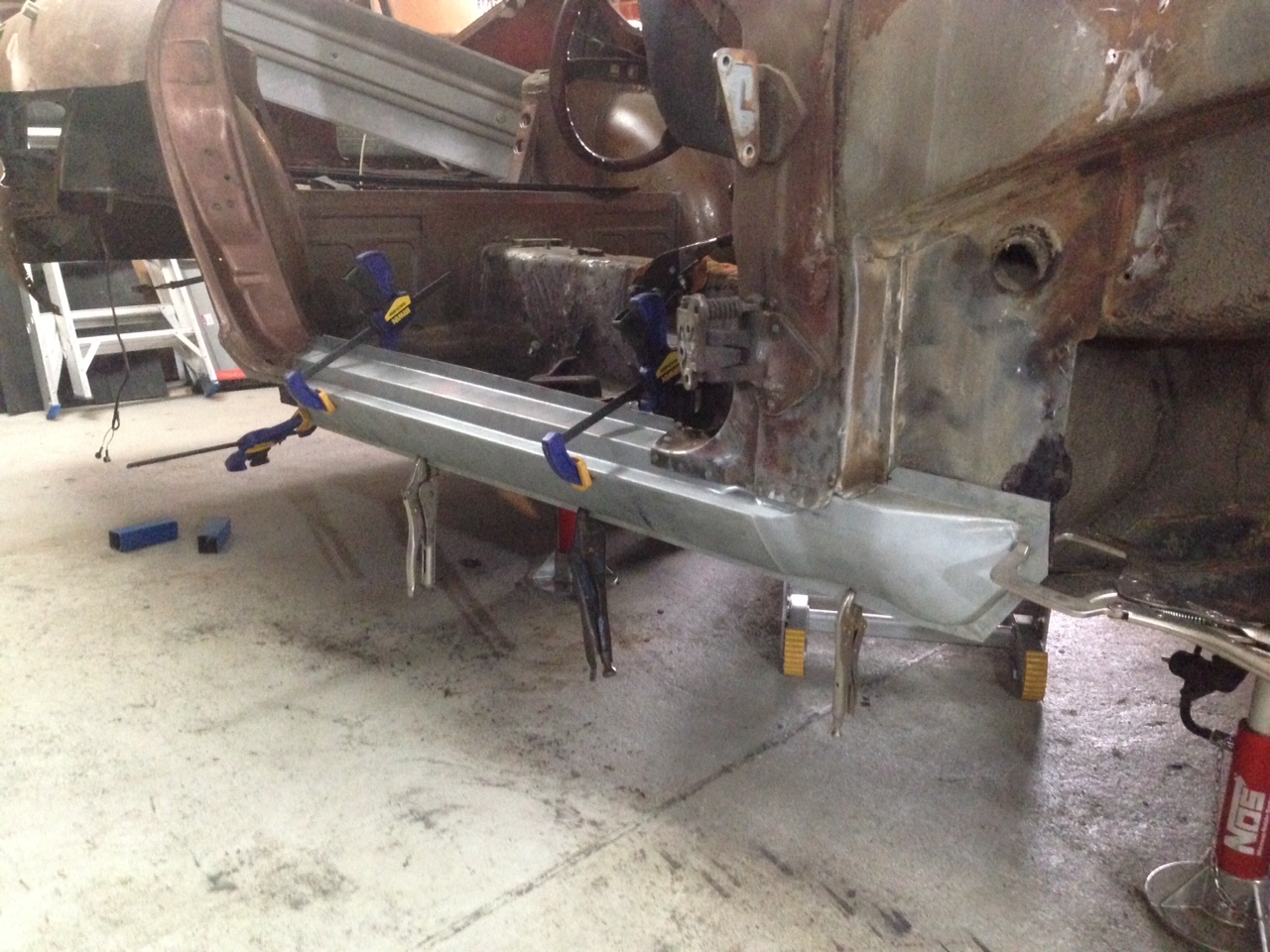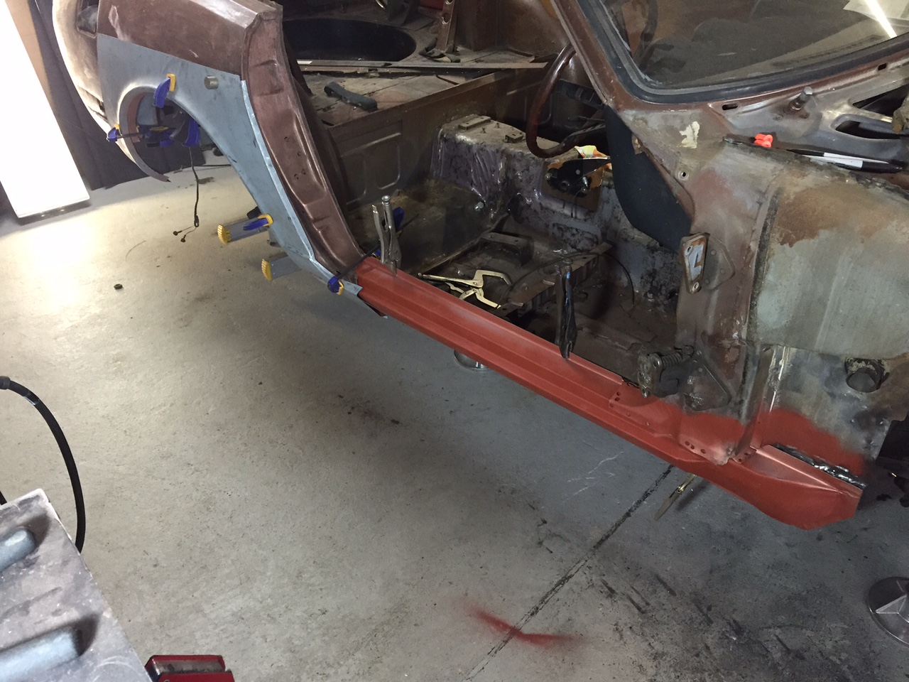 CBR Jeff Posted August 20, 2015 Author Posted August 20, 2015 I managed to spend a few hours in the shed this afternoon. So I am getting back on track I welded a few strengthening pieces in place at the front and back of the drivers side door rail that had previously been manufactured and painted. These were needed as the rust in these two areas was particularly bad so I had to cut a couple of bits out and replace them. The seat belt mount was a bit of a worry but I have a plan that involves both sides of it that should sure up this important section. So after some cutting welding hammering etc and The drivers side inner guard, outer rear quarter repair section and sill are all test fitted. Nothings permanent yet but it all lines up sort of. Quote