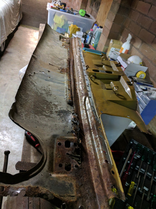 Administrators gav240z Posted November 7, 2017 Author Administrators Posted November 7, 2017 So I think the bonnet on this car was in pretty average shape, but actually the worst part of the car would have to be this rear beaver/valance panel and slam panel section. As you know a while ago I imported the lower half section from a Z supplier in Canada, this piece however was made of really thick gauge steel and with the help of my tafe teacher we tried to re-shape it. Part of the problem was the stamping in the middle, it's quite deep and this means that when we try and curve the piece it's actually being held in place by this stamping. I think the photos will best illustrate the problem. We tried to beat it into shape and then used an English wheel to smooth it out, but we can't get the English wheel into the top section. Notice the bow? So after all that messing about, I said, do you think we could just repair the existing piece? It's going to be a bit of a patch work quilt, but the advantage is that it'a a thinner gauge of steel and more flexible. I've already panel beaten it into shape again (will need more work here) but we know importantly this piece fits perfectly. 1 problem with repairing the existing panel is that I cut a bajillion holes in it removing the spot welds. The zip cutter creates large holes that need to be patched up again. If you're going to remove spot welds find the smallest spot weld cutter possible and use that. I didn't think I'd be using this panel again, but it looks like we will. You can see rather than patch these holes I'm creating a new edge (on each side). If there is 1 thing for certain I'll be learning a lot of welding skills fixing this thing. I'm using Oxy welding here as it will allow me to free form the panel as I go, Mig welds are too hard and brittle and would not allow for much adjustment later. Quote