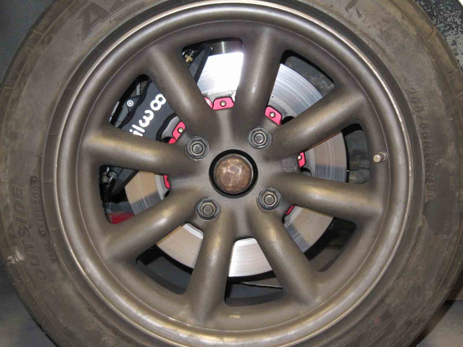 BenZed Posted January 8, 2010 Author Posted January 8, 2010 Ok, brakes now on and working. Nice to have stopping power to match the acceleration At the front as mentioned I have the Arizona Z Car Wilwood four-piston brake conversion. They now make these to suit the early-model 240Z hubs so they were a proper bolt-on fitment, complete with braided lines. They fit very comfortably inside my Watanabes as the caliper sits well inboard. Should fit under most 15-inch wheels too. Quote