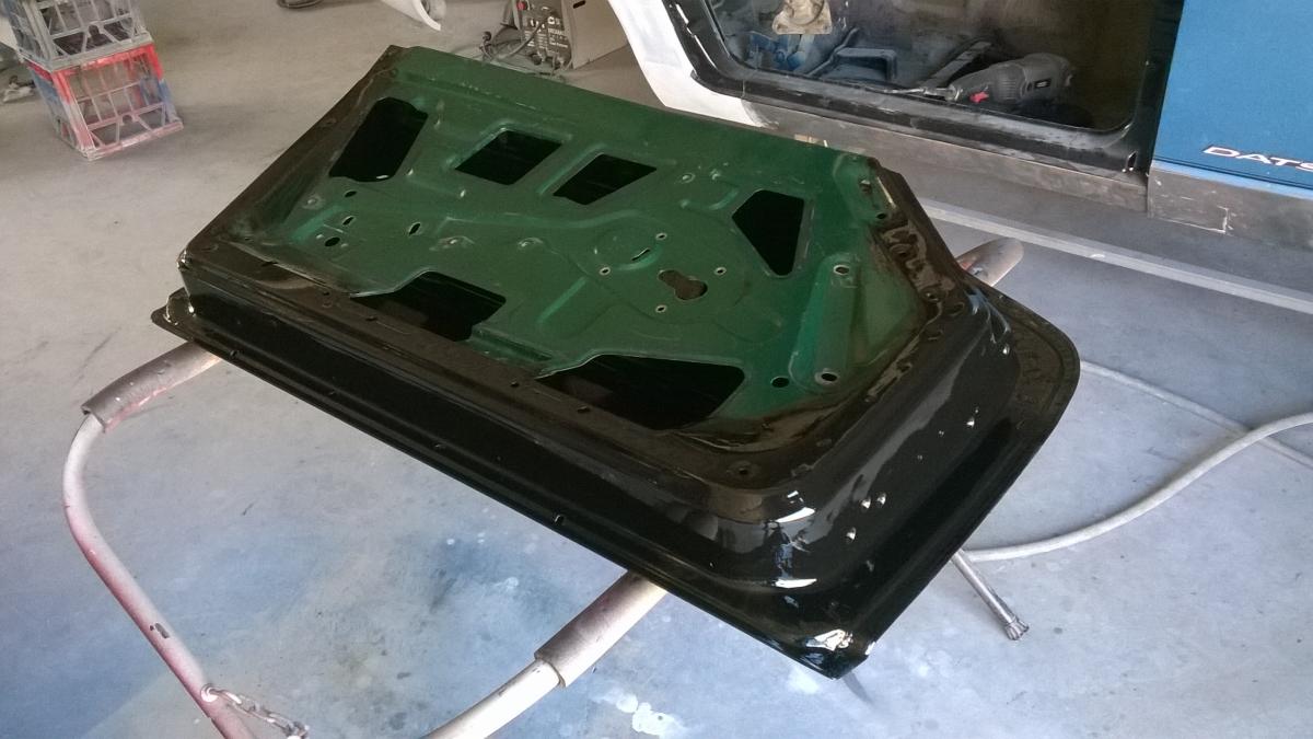 jeff43 Posted March 21, 2016 Author Posted March 21, 2016 Hi All, It has been a while since anything of note has happened on the car. Last weekend I got the passenger door all prepped for paint inside and out. I then painted the inside and frame in KBS rustseal. Then today I got both door skins prepped for paint. Then primed them both up. George and Ponyo240z 2 Quote