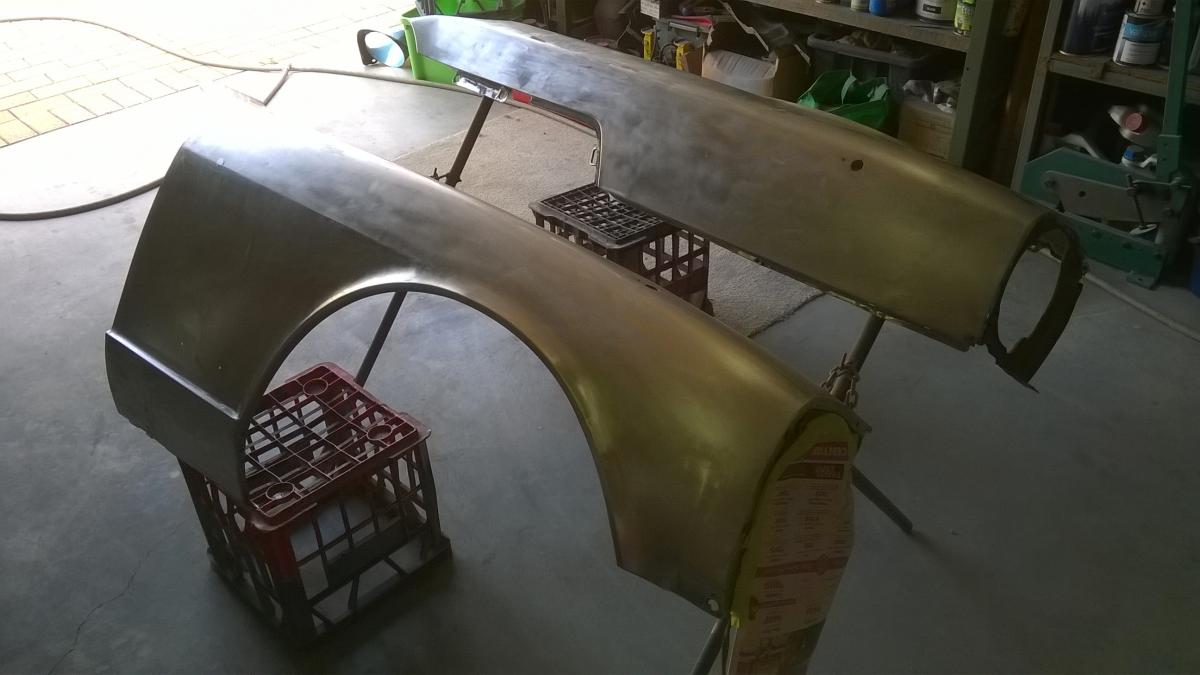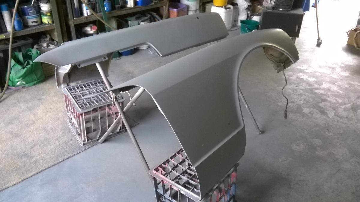 jeff43 Posted March 28, 2016 Author Posted March 28, 2016 So I spent the weekend getting the front guards ready for primer and then primed them up. I then mounted the doors and front guards up to see how the body alignment looks. Things aren't looking too bad, but I will work on the body alignment once all the hanging panels are in primer. Quote