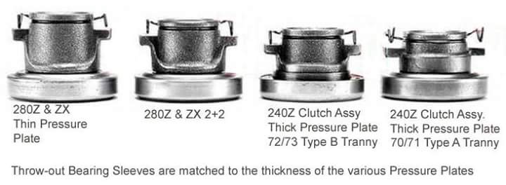 HKSZ Posted March 24, 2016 Posted March 24, 2016 I thought I'd put up some info on what I've learn't with Datsun gearbox thrust bearing carriers. Alot of variables here as clutch covers vary in height and clutch fork pivot inside the bellhousing is adjustable. Generally there is a large bearing for the 225mm (6cyl) clutch covers and a small bearing for 200mm (4cyl) clutch cover, both interchangeable on carriers. In my experience there is five different sizes, measured from bottom to bearing base they are 39mm 34mm 29mm 27mm 25mm. Of these five maybe the second 34mm is aftermarket? seems to be steel, while all the rest are nissan cast. What I can say is on my tall heavy duty 57mm cover i use a 25mm carrier On my custom low HD 42mm cover I use a 39mm carrier Standard 6cyl covers appear to be 47mm tall, pretty confident 39mm is the standard fitment here, given i have about 10 of them! feel free to add. Quote