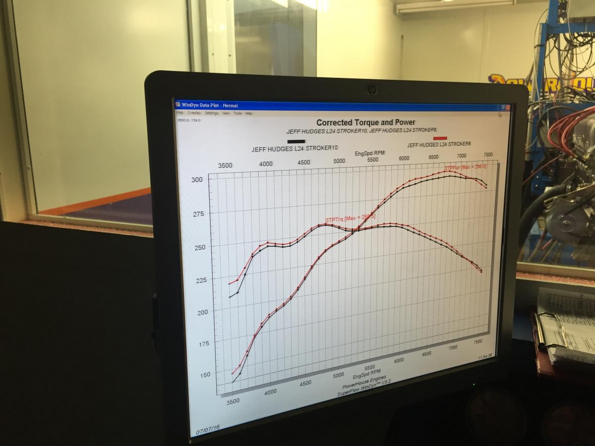 CBR Jeff Posted July 9, 2016 Author Posted July 9, 2016 (edited) Part 7 Specifications Block original L24 Bore = 85.5 mm Stroke = 89 mm Capacity = 3066 cc (call it 3.1l) Compression = 10.57:1 Head original E88 Inlet valve = 44 mm Exhaust valve = 35 mm Chamber = 50 cc Fuel = 98 45mm EFI Hardware throttle bodies Original L24 The L24 was a 2,393 cc engine. Bore is 83.0 mm and stroke is 73.7 mm. Dyno Max power 305Hp at 6800 rpm Max toque 260 Lbs-ft at 4200 rpm Other numbers At 1500 rpm 184 lbs-ft and 54 Hp Over 200 lbs-ft from 3500 rpm Over 250 lbs-ft from 4000 rpm to 6000 rpm Edited July 9, 2016 by CBR Jeff Sirpent 1 Quote