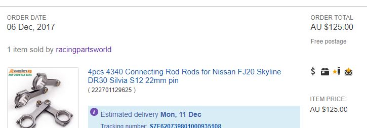 1600dave Posted January 17, 2018 Posted January 17, 2018 (edited) Surprised and then concerned that they were either dodgy rods or a dodgy seller. When they arrived, they turned out to be Maxspeeding rods, look quite good, weigh within half a gram of each other. And yep, they'll be teamed with custom pistons for a KA24DE headed L18 (or maybe L20) Edited January 17, 2018 by 1600dave Quote