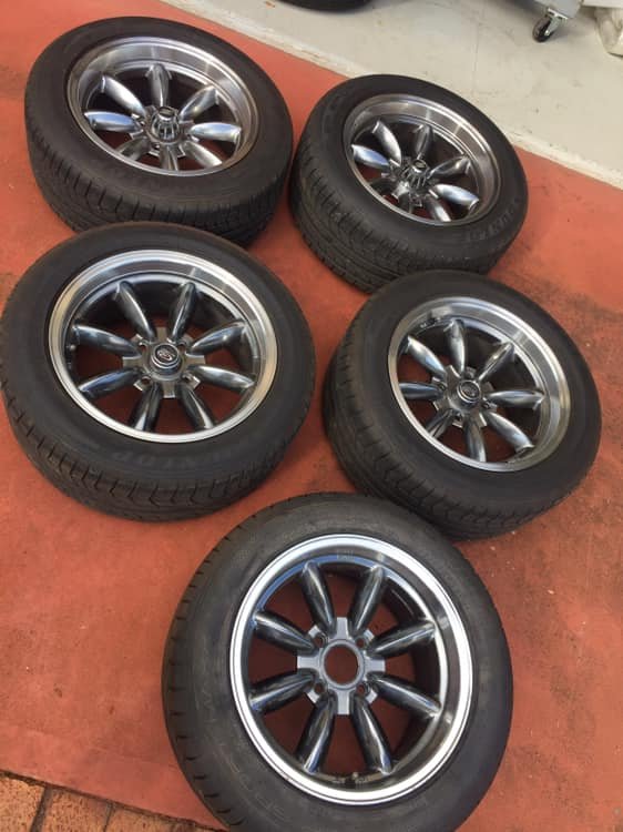 cracker Posted June 1, 2019 Posted June 1, 2019 (edited) For Sale: Set of 5 Rota RB-R 16x8 (+10 offset) - I believe they are called hyper black (more like a gunmetal though) with polished lip. Near immaculate condition (the only tiny blemish shown in photo below) 4 x Dunlop SP Sport Maxx 225/50r16 with approx 60% tread 1 x Dunlop SP Sport Maxx 225/50r16 brand new (the spare) $1250 ono postage/courier at buyers cost Pics shown are as fitted to my 240z (with coilover suspension) - doubt these will fit a stock suspension setup on a 240z without the use of spacers. Ps. Wheels retail for $275 each, tyres around $225 each ($2500 total new) Edited August 12, 2019 by cracker Quote