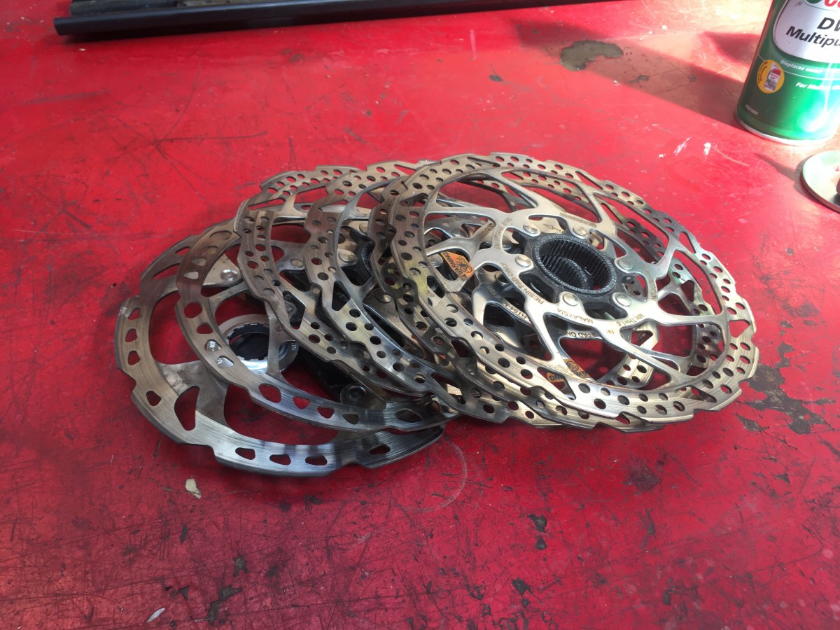 KatoKid Posted September 1, 2019 Author Posted September 1, 2019 New disc rotor day. Trusty hardtail training hack was well overdue for new rotors. I get about 600km out of a set of pads and about 2,500km for rotors and for some reason I cant bring myself to throw out the old parts so I've got good collection of worthless stainless and alloy. Quote