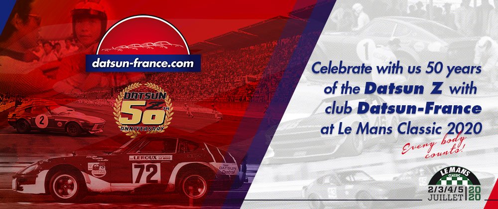 Sean Dezart Posted September 20, 2019 Posted September 20, 2019 Hello. This might seem a long way away from you guys but maybe, for once, you want to be there at Le Mans, especially after the recent Fordvs. Ferrari film ? Club Datsun-France is preparing for this prestigeous and enormous biennial event, the dates for which have been set as Thursday 2nd July – Sunday 5th inclusive. We aim to continue the 50years theme and to improve upon the 2018 attendance of 50x cars, so we’re counting upon you all to come together to celebrate and share a great moment against the fabulous old-school atmosphere of Le Mans ! In order to benefit from the preferential club stand, discounted tickets and no booking stress for you, I as usual on behalf of our club, will be organising the Datsun/Nissan ticket bookings direct with Peter Auto including camping accommodation via the ACO ! It’s not too early to book for track sessions, accomodation and a place on the stand ! I invite you to contact me at : seanz@wanadoo.fr for a more complete information package including estimated* prices. *we’re awaiting the official figures. Kind regards, Sean Président, Club Datsun-France Quote