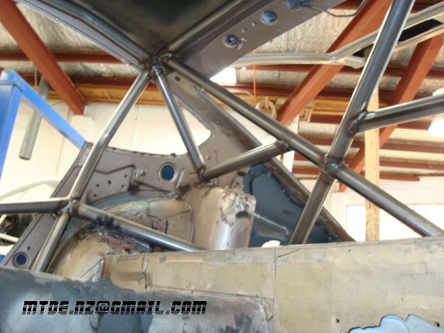 Gaijin Posted October 21, 2008 Author Posted October 21, 2008 - cage fully welded up now, and completed. - car a roller, can push between the workshop and the bank manager. - Neil Fraser has viewed the car, and more than happy with the efforts, with regard to certification. - Front end has steering arms attached, thanks to the donor skyline for compatibility - Front anitroll bar mocked up, will be sent away for manufacturing, two settings, forged ends. - Camber plates re-made, to REDUCE the -ve camber from the lower arm lengthening (70mm+ each side) - Camber plates pushed out to the max, without chopping up to much of the outer strut tower. Requires a beating to stop springs rubbin' - Lower arms and steering arms are close to parallel, and are around horizontal at ride height. ie. -ve camber change on bump only. Can make up some of these 'bump steer' spacers, but these would change the bump/camber change characteristics (for the better), and make the bump/steer worse. Steering arm - knuckle would require lowering to improve. Something to look at later, once susprog3D is up and running. Car is being removed from Herberts Fabrication within a fortnight, for the next phase of works - or break. Have asked Roland Miester (Pi Research/Development Pectel Manager) for sponsorship for the SQ6M Pi ECU for the car. A very cool and beefy ECU, dual motorolla processors, data logging, internal memory, fly by wire, traction control, and run dual lambda sensors for quick learning....go the UK! Perhaps more plugs will see some results? Go Roly! Perhaps an opportunity for Pi to expand into the aftermarket ECU industry? Their usual fare is F1, V8 super's, WRC etc. Super BAMF ZG flares are manufactured and on their way from the States (+1" wider at the front, 1.5" wider rear, than the standard ZGs seen out there) - Better hurry up if Im going to make the Feb Taupo track day eh? Quote