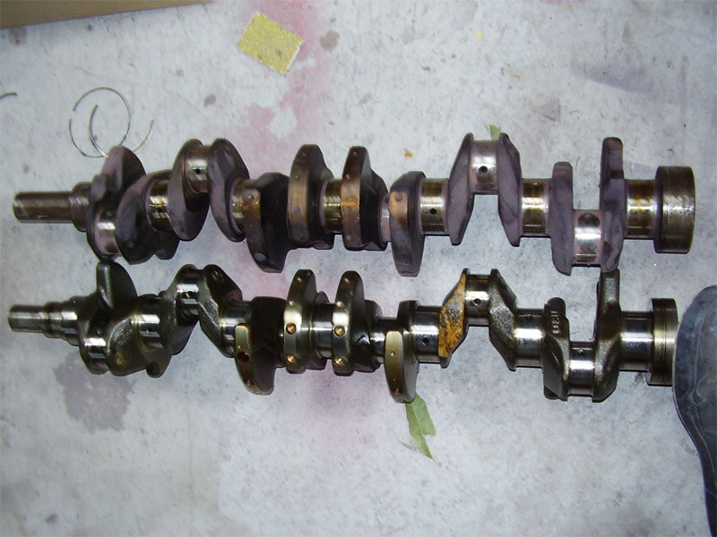 Zeddophile Posted April 24, 2009 Posted April 24, 2009 Looks by eye like the top one has longer stroke than the bottom one, and going off the larger flywheel boss and massive nose of it where the balancer bolts on, I'd say the top one is an LD28 crank, against one of the L6 series petrol crankshafts? The bigger thrust bearing journal in the centre and the chunkier counterweights also suggest diesel crank to me.... Quote