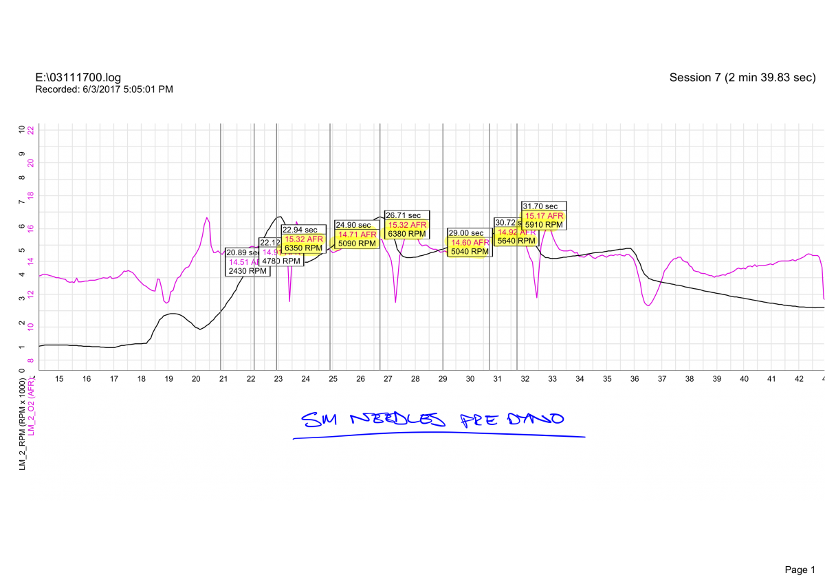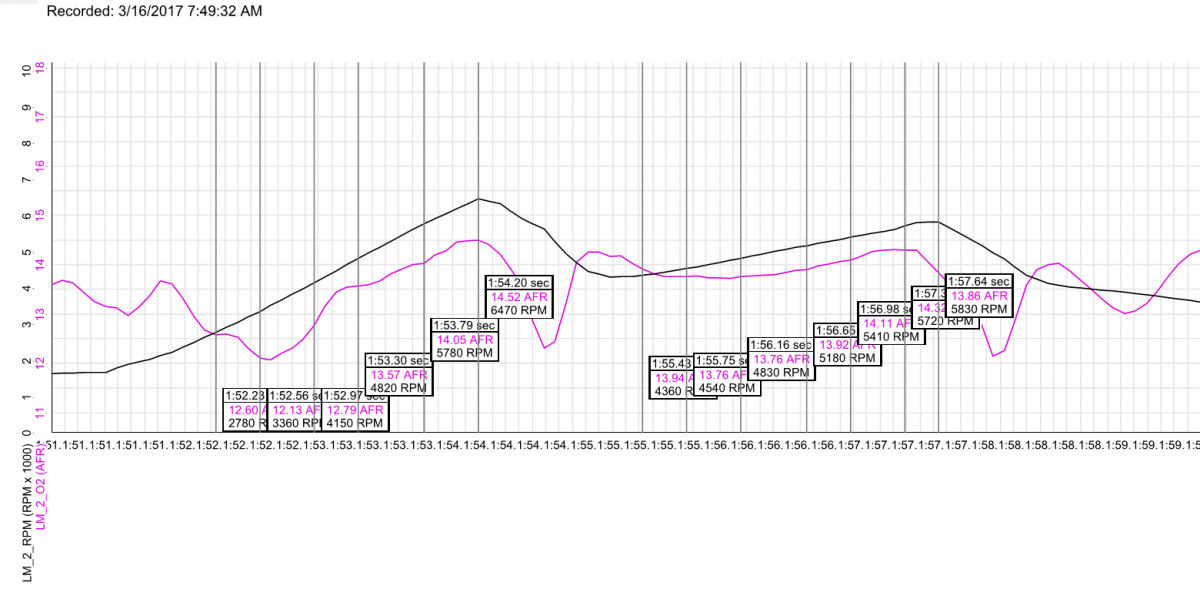 Aaron Neubauer Posted March 24, 2017 Author Posted March 24, 2017 I recorded a WOT run with the WBO2 and I'm pretty happy with the SM needles. I had the expectation that it would be rich as all buggery but it was little on the lean side which is not totally great for power but a fair compromise. Now all I need is to organise that dyno run! Quote