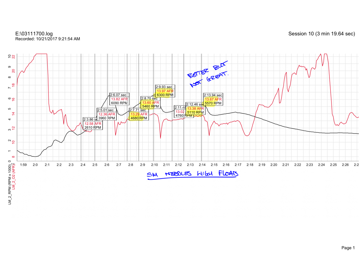 Aaron Neubauer Posted November 4, 2018 Author Posted November 4, 2018 I turned my attention to optimising the needles in the Hitachi SUs. I took the function stations from the SM, RV and RU needles I’ve trialed previously and went searching for a best match. I went to use the Mintylamb.co.uk resource but found that had closed down some time ago. Ended up using Teglerizer’s resource http://www.teglerizer.com/suneedledb/ to find SB needles were the closest. Ended up sticking the needles in without lowering the fuel floats down from the band aid fix to riches top end with the SM needles. The SB needles worked a treat and the AFRs are offset by the amount that raising the float changed. Overall very happy. Next port of call is to lower the floats to factory and I reckon I will have 99% convergence to the best mixture I can achieve without making custom needles. YosemiteZed, Ponyo240z, gav240z and 1 other 3 1 Quote
