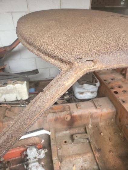 RichyRich Posted May 12, 2024 Posted May 12, 2024 (edited) Hi, not worried about the hole, can have a patch repair, but the surface rust looks pretty bad. The roof looks very dimpled, the rear and front quarters not quite so bad. Can it be repaired on the existing panel, or would it need a new roof? To be honest, I suspect this car may not be salvageable. At best, the front fenders and bonnet maybe ok, but every other exterior panel is too far gone and would need replacing. Agree? Thanks !! Richard Edited May 12, 2024 by RichyRich Add more context Quote