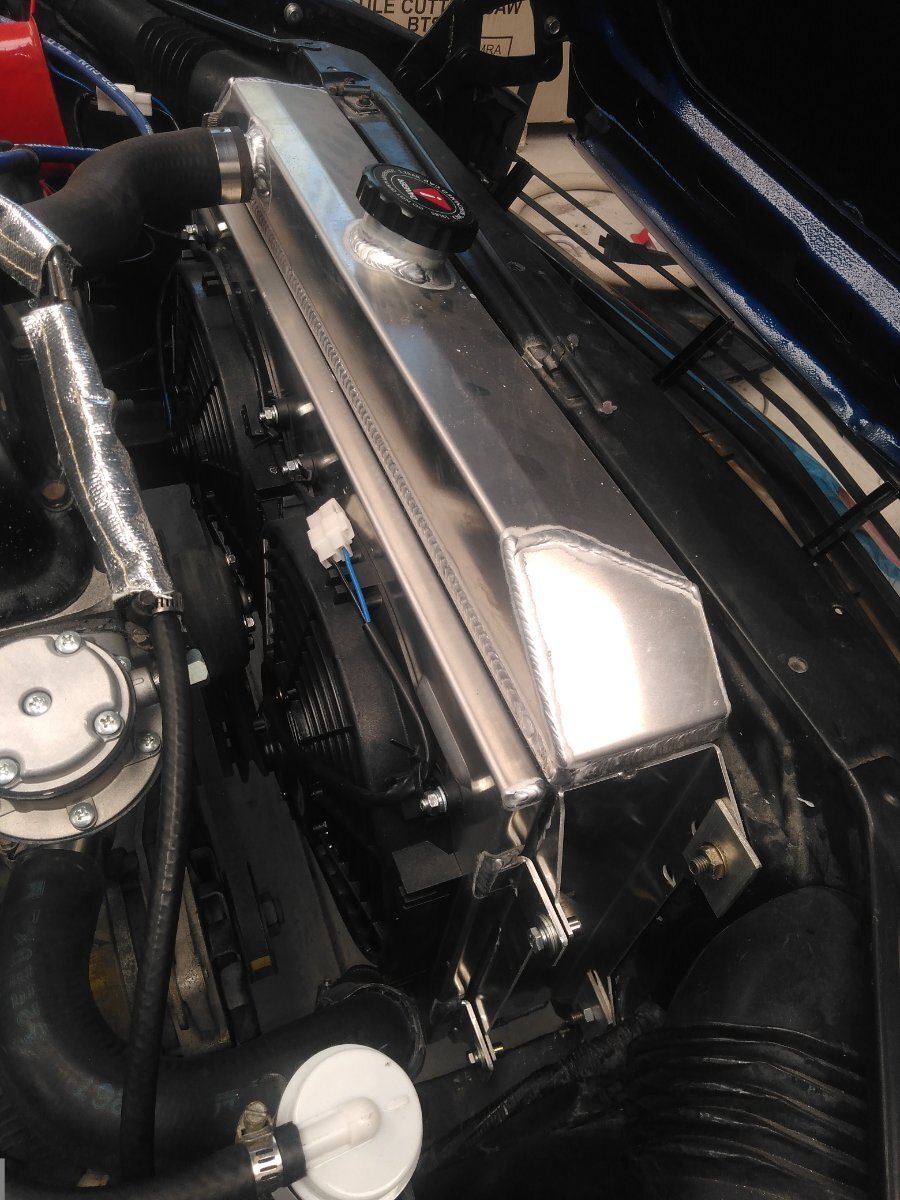 Hi Enzo, Thanks for the response, sorry delay in responding, lost access for a few days. Vibration not there when fans are off, took viscous fan off and removed studs from water pump and bolted pulley on to water pump with short stainless bolts. 4 core radiator with shroud and fans bought on the net via ebay from a company based in sydney. Came with relay, temp sensor etc. all works fine. Only about 1cm gap between pump pulley bolts and electric fans, but not touching.
