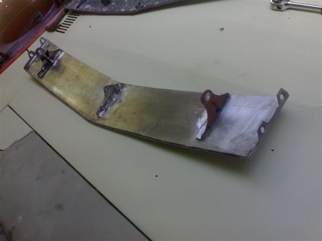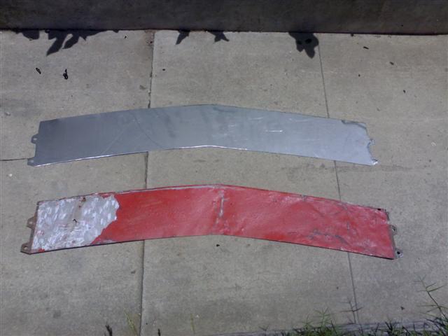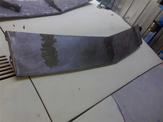 Scoota G Posted February 14, 2010 Author Posted February 14, 2010 An assessment of the two front Valance Panels showed them to be not fit for use so the accident damaged one was flattened and used as a template. The brackets were first drilled out and after the new valance was created and the edges folded it was bolted in place on the sides and then the three brackets were bolted into place and then welded to the new valance. Quote