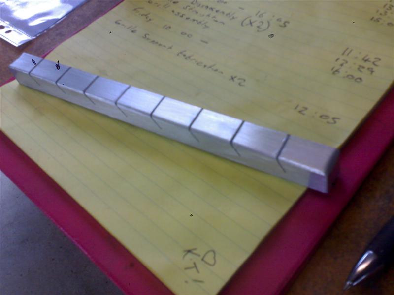 Scoota G Posted February 14, 2010 Author Posted February 14, 2010 Dale asked for a full length grille so two were made from one. The standard grille has 7 slats so i used the top part of the of one of the grilles to create the bottom of the new grille. Four pieces of 16mm x 16mm aluminium channel were then fabricated to extend the grille the extra three slats we required for the bottom of the grille to meet the top of the Valance. This method uses the original mounting brackets for the top two points and the middle one on the bottom, the two lower side mounting point need to be shifted slightly. The centre of the bumper will be cut out. The new grille also uses the long thin bolts that hold the grille together and can be disassembled. Quote