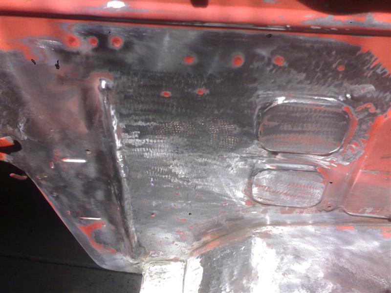 Scoota G Posted February 27, 2010 Author Posted February 27, 2010 This should be the last of the welding. The battery tray was a bit troublesome (rusty) as was the passenger side firewall which was a bit wavy from all the pushing and pulling. There's a pressing in the firewall that goes down the length vertically that i welded a piece of round bar to from the inside and then used that solid point to form the firewall back into shape. Sort of like squeezing it in a vice to get it back to shape... worked a treat. Quote
