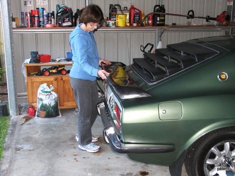 peter t Posted May 16, 2012 Author Posted May 16, 2012 Well the ironing board turned up today from MSA and now I have a bit of work in prepping and painting. Nothing ends when you own a Z. The cheese and kisses is not impressed as you can tell but it [the car ] will look better when I get around to fitting the metal rear louvre as well. The plastic one sticks out a bit too far when you add the board. Will paint the front spoiler at the same time to kill two birds with the one stone. Quote