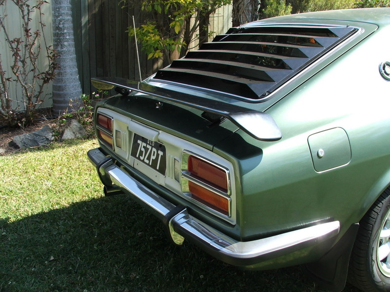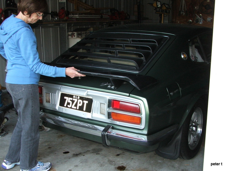 peter t Posted September 22, 2012 Author Posted September 22, 2012 Update on the ironing board. Well it had to go and is still up for sale. However, not to be put off by the wife, I bought a XY Falcon GT rear wing which after fitting to the Z the little lady is happy and I might add so am I. Being smaller than the MSA Z one it quite suits the Z. Still have to paint it and in two minds whether black or green. I will make a decision in the month or so but for now it can sit there naked. RunawaySloth 1 Quote