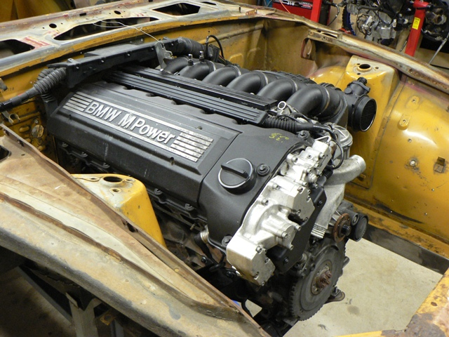 KatoKid Posted January 15, 2011 Author Posted January 15, 2011 Had a big night in the shed last night, didn't finish until 1:00 but very pleased with how things went. Wanted to give you all a glimpse of what Ive been working on in the background for nearly a year now, I haven't posted anything about this previously as Ive had some trials and tribulations along the way and at times even doubted I would get to this stage.....and there is still a long way to go before I could say I'm happy. Will post heaps of detail on how I got to here in the next week or so but basic details are: S50B32 engine from a 1998 E36 M3, Ive got the matching Getrag 6 speed but have installed for now with the ZF 5 speed from the earlier 1995 E36 M3. I'm going to run the factory ECU and have the matching EWS, harness and keys to make the anti theft system work. Ive been working in the back ground with Ron Tyler of RT diff mount fame, Ron is putting the US spec S52 engine in his car http://forums.hybridz.org/index.php/topic/79806-rt260-bmw-m-powered/ While the basic block is similar the engines are actually very different. The US engine is designated S52B32US and is derived form the production M52 engine with single Vanos, lower compression ratio, hydraulic lifters, single throttle body and is rated at 240 HP compared to the the S50B32 (also referred to as the S50B32 Euro) which has 6 throttle bodies, constantly variable dual Vanos, Siemens ECU, solid cams, 11.3:1 compression ratio and is rated at 321 HP and is one of first production engines to make 100 HP per litre. Until last night I was making lots of assumptions based on Ron's swap about how the S50B32 would fit, turns out the difference in engines will cause some issues but nothing that cant be dealt with. Ron was kind enough to provide me with a set of his engine block mounts as the blocks are essentially the same and using E30 325 rubber mounts it pretty much bolted in...after I removed the bonnet latch bracket. Trans crossmember is nearly a bolt in too and the best news is that the trick factory stainless exhaust headers look like they will fit with the slightest massaging. Biggest unknown is the drive line alignment, Ive got good clearance to my Subaru rack but the BMW runs a guibo joint on the output of the trans and this must be perfectly in line with the diff or else they self destruct. Lots to do and I will post as I make more progress. Cheers. Quote