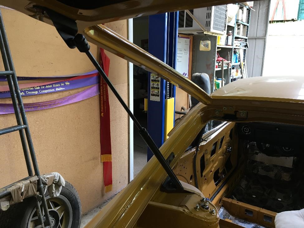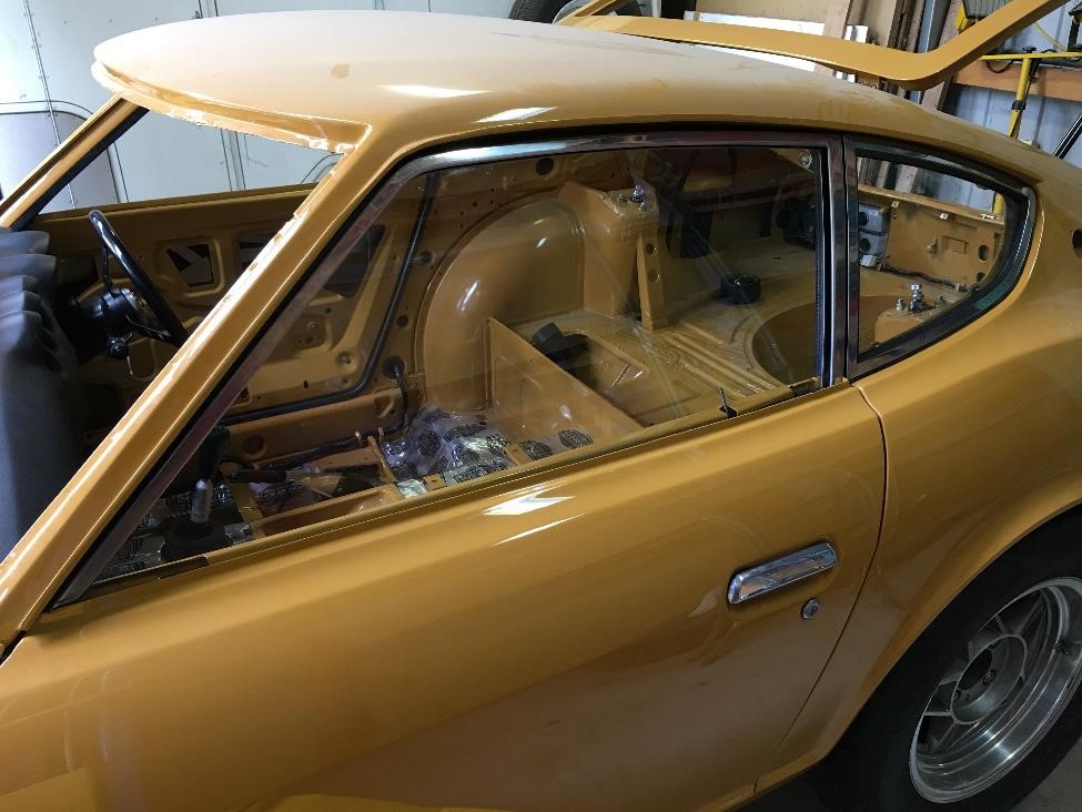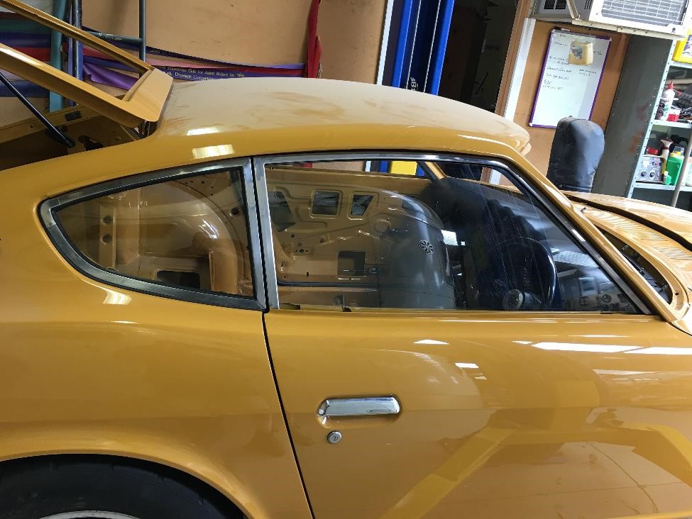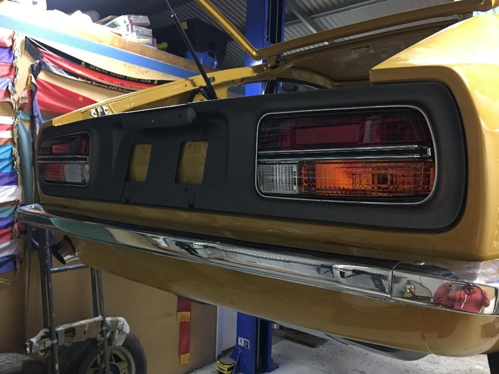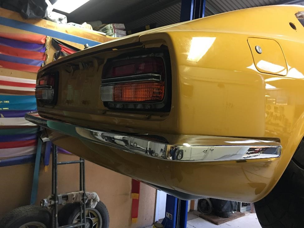 KatoKid Posted August 17, 2017 Author Posted August 17, 2017 Brother dropped in and helped fit the 1/4 windows....definitely a 2 man job with new seals but pretty straight forward. The 1/4 windows define where the door frames need to sit to get good gaps where the back edge of the chrome door frame and the front edge of the 1/4 frame meet. And you need to fit the door seals so that you can check they are parallel in both planes. Whoever discovered the Kia Sportage seals are a good fit needs to be commended, they are absolutely perfect. After an hour of adjusting I got the gaps all parallel, doors closing nicely and sealing and the glass winding up and down and sealing properly. Bit of mucking around but not too bad. Also fitted the chrome trim to the tail light surrounds which was a bit stressful to ensure no paint was damaged and then fitted these and the painted number plate light to the car. Very happy with the colour and satin finish. It looks dark in the picture but is a lot lighter, it was matched to the Fairlady grille I have so I'm confident its close to original . Also painted the brackets and fitted the new hatch gas strut. gav240z, C.A.R., CBR Jeff and 1 other 4 Quote