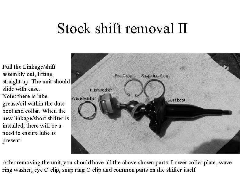 Riceburner Posted August 24, 2013 Author Posted August 24, 2013 Nice work Gareth. Cant wait to hear it now on the track screaming past. One day. Hopefully soon mate, It's been far too long! I have modified the shifter to fit and use the OEM shift boots, It' a hybrid of the RB base with my old Z stick as the top. The old stick was already offset as I was running a 260 box in an auto car, all I had to do was weld this onto the RB 'ball' and I have plenty of clearance. The trans tunnel is a mess, this was the hack job done by the people who did the manual conversion previously. Once the rubber boot goes on it still manages to cover the butchered part of the tunnel luckily. Kameari crossmember is ordered, hopefully this will solve the vibration @ 100kph. Kameari said this mount is only suitable for post September 72 Z's with the 71C conversion. Regarding the shifter, It appears I am missing the 'wave washer', 'snap ring C clip'. Anyone know part numbers or better yet have some they aren't using? I want two wave washers, this will tighten up the feel a lot. Did I say how awesome this box is, the ratios have transformed the car! Quote