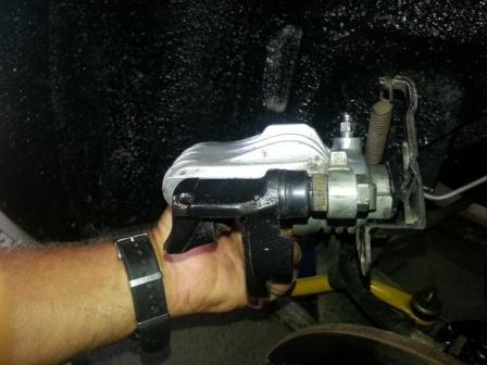 red76z Posted May 7, 2013 Posted May 7, 2013 I have since done the handbrake mod to suit the disc brake mod. I thought it would be handy to take a view pictures along the way to help you guys with your future mods. It has made the handbrake angle go from 90deg to about 40 deg. This mod is quite easy to do. you will see 2 handbrake brackets in the pictures I have posted, The dirty one is the original which I will not use because of excessive wear. The sandblasted one is from my doner Z out the back. Very Handy. Step 1 undo the 4 bolts holding the bracket to the tunnel 10mm socket and disconnect cotter pins and cable. step 2 cut the small pivot in the middle of the bar off. step 3 weld the small pivot back on at 11 o'clock angle. step 4 drill a new 10.5mm hole 32mm up from the original pivot point on the long arm (the one that connects to the handbrake lever) Then chop the end off if you want. step 5 you need a shorter bolt to connect the small arm back on to the pivot leading to the handbrake cable y section.(I just used a die 6x1mm and re-threaded the original bolt then chopped 20mm of the end) step 6 reinstall every thing And it works a treat about a 2 hour job P.S take the tail shaft out to make your life easy. Quote