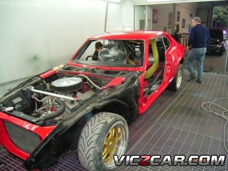 Body Painted. Sunroof all welded in. Note the front tube welded to the front guard for stability, this is all connected to the Roll Cage in the cabin.