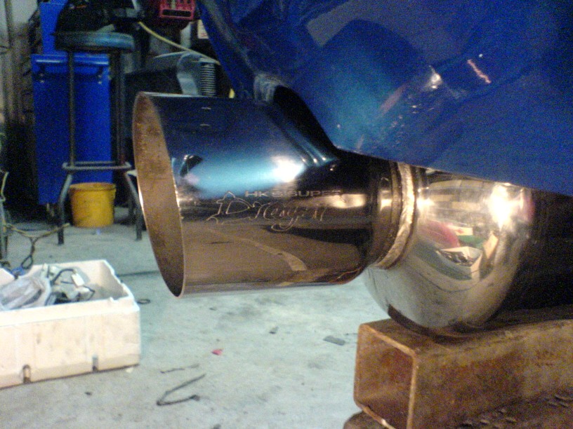 Modified R33 skyline HKS super dragger muffler with 3" stainless steel custom pipework with RB20DET divorced dump pipe.