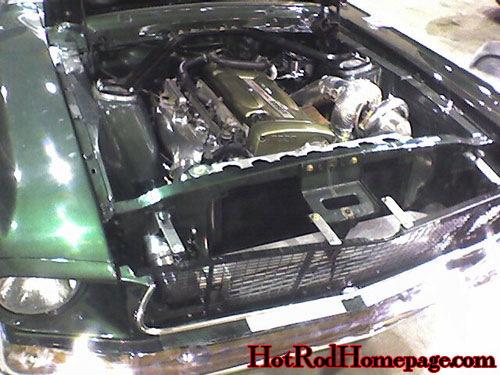 how's this...1966 fastback Mustang running an RB26.Suppose he wanted more ponies.