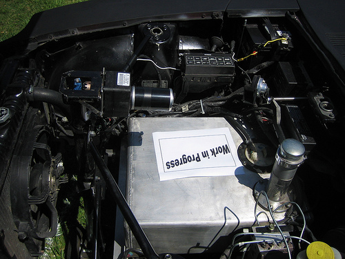 Engine in the back and Fuel cell in the engine bay ....I've got to give the guy credit...it's different.