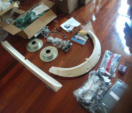 Got a lot of goodies storing up at the moment ready to put into my Z. As you can see a box of precision weatherstrips on the left, the rear brake upgrade kit from eBay. The rear spoiler and ZG flares thanks to zr240 (your a legend). Rear taillight gaskets that took 3 weeks to ship from Japan and costed 180 bucks from Nissan Brighton. Got a armrest kit thanks to Eiji Datsun Spirit. I also got some Chrome fender mirrors also from Eiji (these mirrors rock the internals are metal).