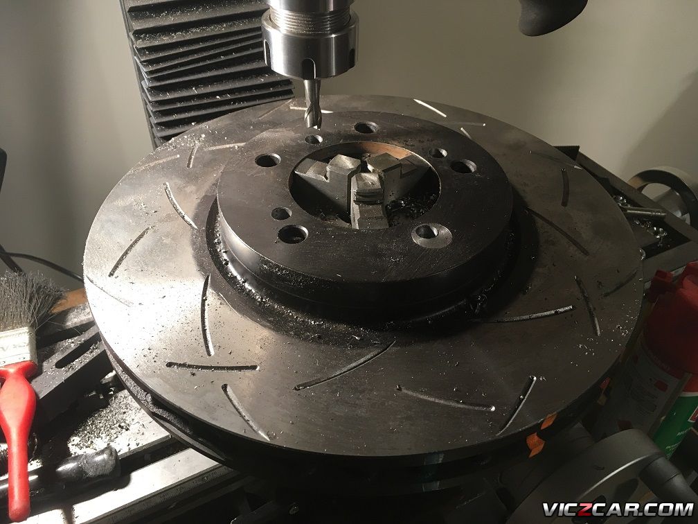 R33 Skyline discs. Centre machine out. New bolt holes to mount on 240Z hub.