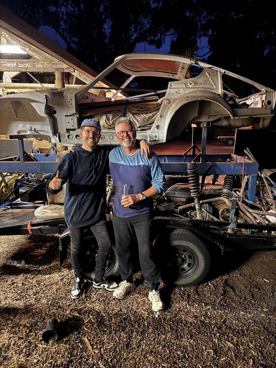 Hi all, I thought I would introduce our new build. We have just picked up a very sound 260Z 2 seater shell and parts and intend to build a road track car for targa events, hill climbs and track days. So a bit of background, my son Matt was quite an accomplished driver through karting and then Formula Ford. On our many trips across to Victoria from Adelaide, we would often talk about one day building his dream car. One that we could both share the build, and also enjoy driving it after. We looked off and on for a 240/260 2 seater for some years, and eventually this one popped up, and after road trip to Arrarat, it's ours. The basic plan is a stock LS3, 4 speed T10+, roll cage, and upgraded suspension, brakes etc. It will in the restomod theme, where it will remain cosmetically sympathetic to the original, but then upgraded for competition use underneath. I have a couple of builds under my belt now, having just finished a 1960 Split Window Kombi, and prior to that a 750HP LSx454 into a 93 HSV Senator. The idea of this build is for me to teach Matt as much as possible, as he really wants to be very involved with the build. We wont get started on it for some time, but at least we have the car.6 points -
