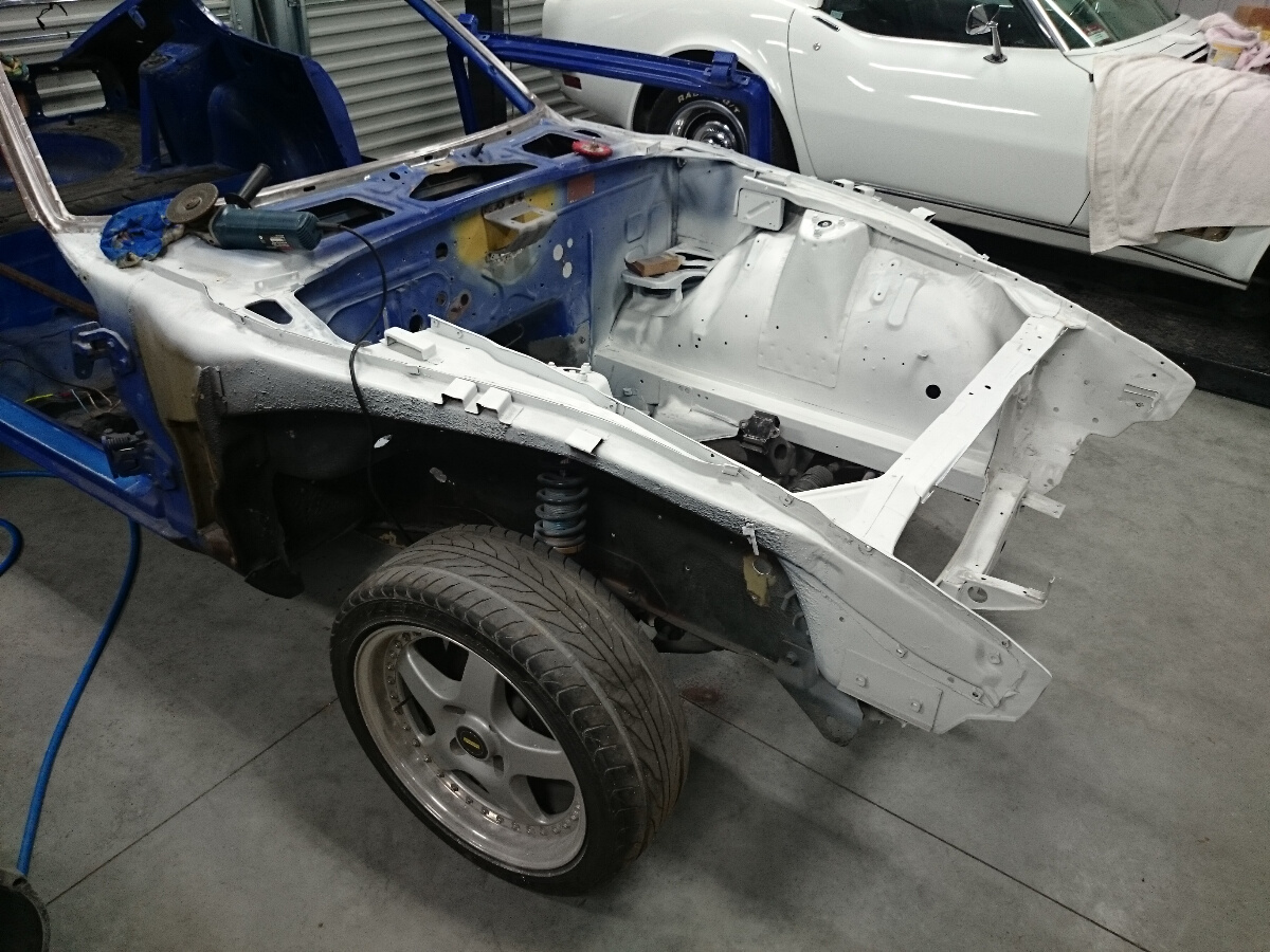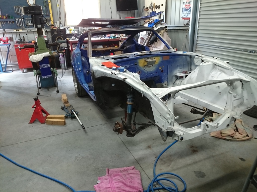 Hello everyone, I am starting a new build thread on my 77 260z. The forum has been a little quiet so I thought I would add my build. A couple of years ago I had decided to put an RB26DETT in her but my plans have changed (due to a back injury). The RB and many parts I had sourced have now been sold and the Zed will now be a street-able cruiser. I love the V8 in these cars and if its to be a cruiser that V8 rumble is a must! The Chev is a great choice and I did once have a 350 in her as many of you know. But in the corner of my shed sits a freshly reconditioned 351 Windsor waiting patiently to power something. I also wanted to tackle a conversion that doesn't seem to be very common and a little more difficult. Anyway enough talk here are some pics. Here is the Zed all stripped and ready for measuring.