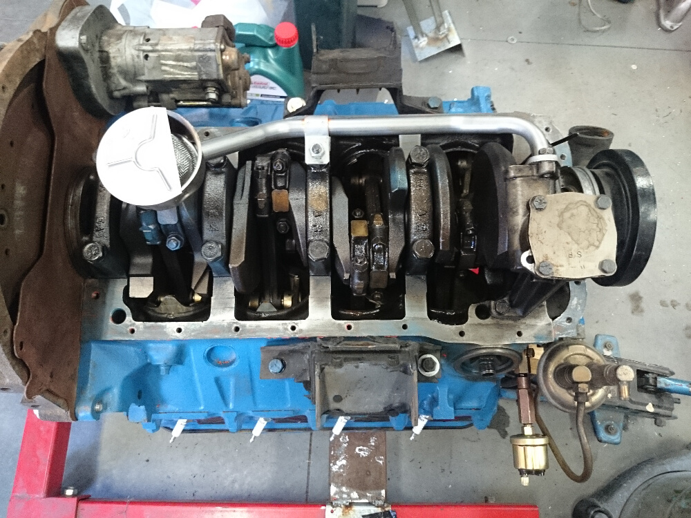 So I get the engine all prepped with carby, dizzy, and exhaust system. I connected up an oil pressure gauge and tacho to give me some info during the test.