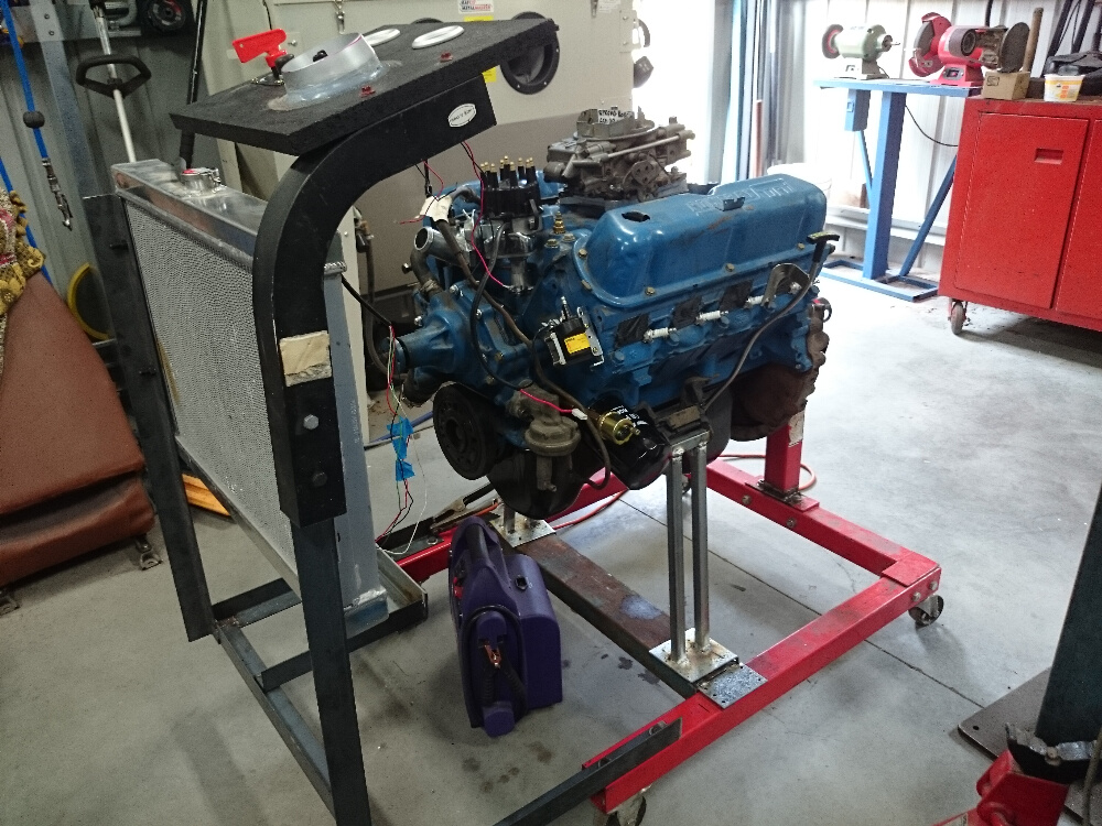 The first thing I wanted to do was to run the Windsor on a stand to make sure it was OK. I grabbed my engine stand and modified it to suit the Windsor. I purchased the fox body sump from Ford Racing and I am very happy with the quality of the kit. I bolted it all up and then mounted the engine the the stand.