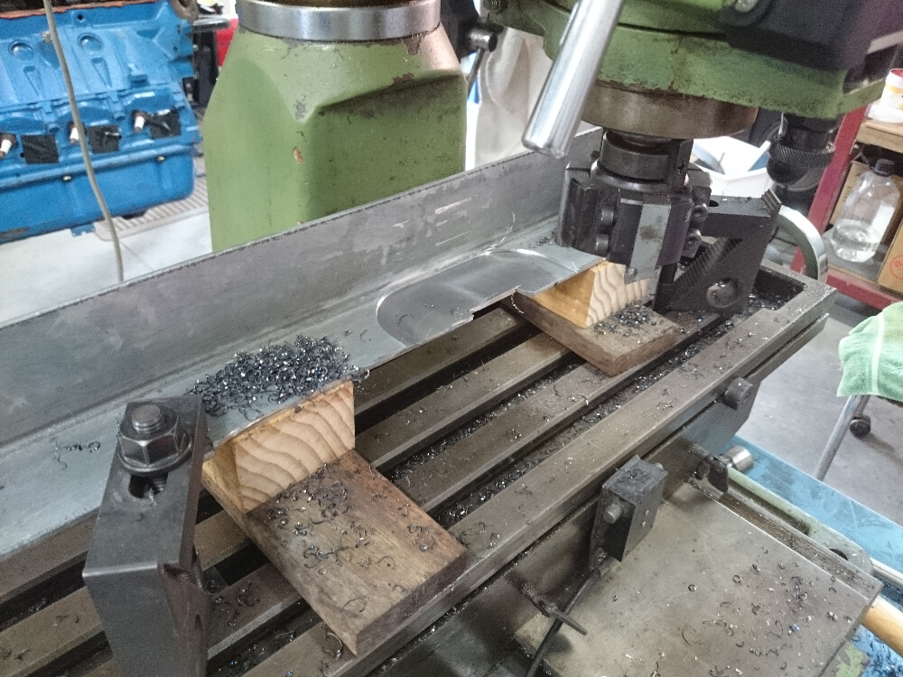 Right one more picture of the 351 Windsor just after a short test run. Happy there was no loud bangs or rattles. The next step is to start fabricating the cradle. It will span both chassis rails and go under the sump. First was to make sure the angle iron was sitting flush with the side of the chassis rails. Enter the Mill!