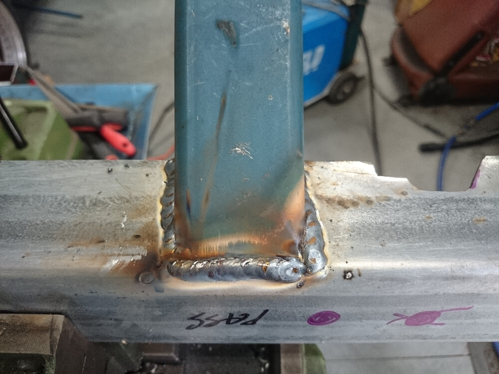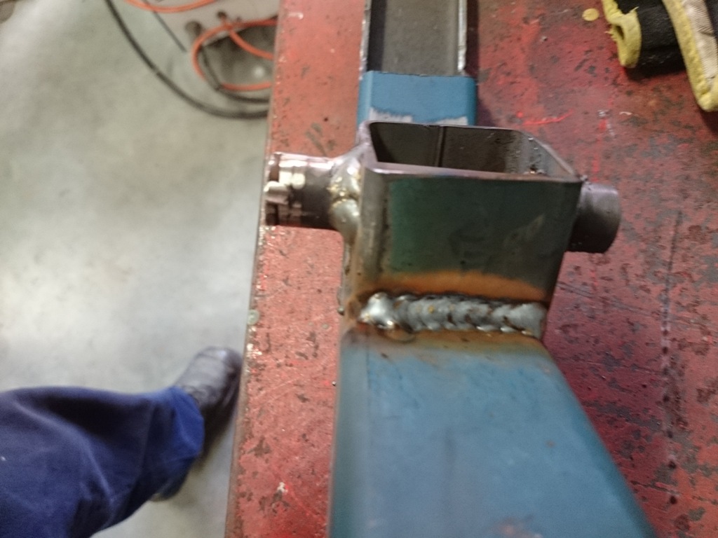 Well I measured up the first sections for the cradle. It was a bigger job than I anticipated because I had to remove sections underneath to clear the radius rod support. I removed the pieces and re-welded the box section to ensure I had the strength needed. On looking at my welds I could have increased the voltage, but I did get some nice heat penetration so it will do. Here is some pictures. Jerry my greyhound is constantly supervising me and comes into the shed regularly to inspect my progress.