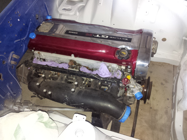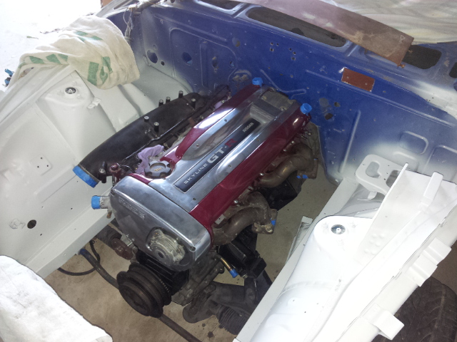 Brief update everyone. We will be moving house in August so work has slowed. I dropped the RB in and conected up all the mounts and it fits well. After the move then I will get to work on her again. Cheers Graeme.