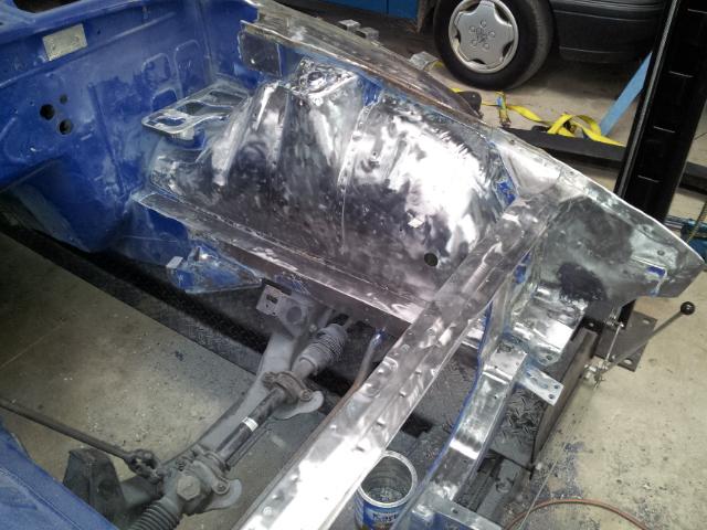 I have started the stripping process, paint stripper and elbow grease. I have unearthed a few little problem areas but she is pretty straight. Advertised the Chev and it sold within a week. I have sourced a RB26 and a 25 box with a few parts included, so that should be here any day now. Let the stripping continue.