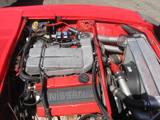 RB20/25/30 conversion have been done numerous times and explained on this forum and others. its almost an old hat. SR20DET is even easier than RB. only hard bit is making the engine brackets and positioning the motor correctly. in both cases tailshaft has to be made/modified/shortened etc...... also in both cases you have to plumb in the intercooler piping. on this forum alone i think theres about 5 different ways of doing this. Fuel pump has to be replaced with high pressure high flow. being a carby fuel tank there arent any baffles inside. so u have to have a lift pump and also recomended a surge tank. other option is a custom fuel tank with internal pump. in the RB20/25/30 case first thing you have to do is get the sump rotated so the bowl sits at the back of the engine. few ways of doing this. 1. buy a 200zr Z31 fairlady Z sump and oil pick up. and fit it. cost about $650 new from nissan. 2. cut and rotate weld the sump back. still need the 200zr oil pick up. also need to slightly bend it to fit correctly. 3. Rb30 sump out of GQ patrol. the extension tank of the sump needs to be removed due to low clearance issues. again the oil pick up is needed. once that is sorted out than you can start thinking about mounting it. again theres more than one way of doing this 1. this is what i did to my RB20DET into a 260z 2+2. Used factory R32 mounts and brackets. sloted the factory x member to replicate similar setup as on R32 cross member. also u can level the engine lot easier. pretty much than the whole thing bolts up. the factory gearbox mount /bracket will align up to the 260Z tranny bracket and mounts. only issues with this engine sits bit forward. not more than L series engines. so ive redrilled new holes both on the brackets as far backwards as possible. both the engine holes and engine mount. this pushed the engine backwards about 1' or 25.4mm. by doing this the tranny mount no longer aligns up. than you have to make a custom trany mount. or reposition the z tranny bracket by the right amount. 2. buy a kit from a shop with engine brackets and mounts. than again im not sure where these kits position the engine and if you need to reposition the tranny bracket. On the tunnel due to RB box stick position being lot closer to the engine u have to remove the extra plate that is spot welded on the tunnel. to further help with this issues u could use SR20det stick housing and shift block. that pushes the stick back by another 15mm or so. alternatively could get those ebay short shift kits that have the housing together with the stick. but you steel need to buy the extended shift block from nissan. i think i pretty much said all what need to be done mechanicaly to convert to RB SR. again with SR being a 4cyl theres ample room in front for V setups for intercooler/ radiator. after that is the wiring issues. there are few tricks and tips when using factory wiring of the engines to factory wiring of the car. one particular issue will cause nitemares but its so simple. and catches most ppl out. more on that next time. than dont forget the brakes. they need to be looked at otherwise you be using cars infront or fences to slow you down.