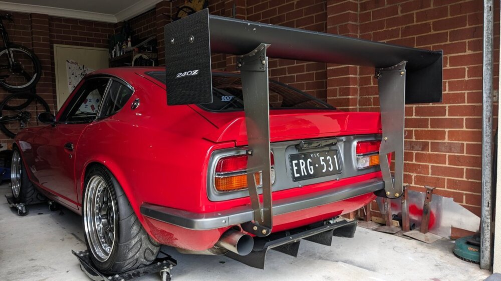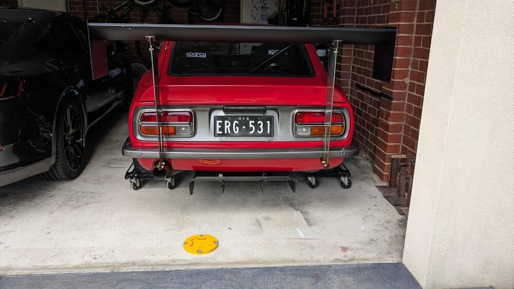 Thanks for the heads-up, have been thinking of something like that. Because I now have a bumper bar on the rear new wing mounts were required, also brought the wing closer to the rear of the car, bigger new end plates to improve wing efficiency (according to everything I have read). Here are some pics of rear wing,