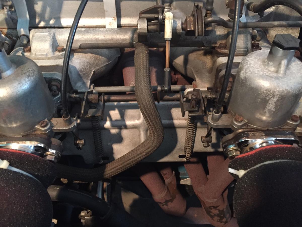 Could not find a thread here anywhere here but has anyone put up much about the various setups on the SU's? Firstly my 2+2 has what I thought was the standard setup but with a closer look it was not getting full throttle. The geometry appears wrong with the way in which the adjustable arm that goes down perpendicular to the linkage between the carbies. When I compared them to a mate's L20A Fairlady (import JDM-last photo) its setup was different in that the centre linkage was in board of the centreline of the shaft between the carbies. This resulted in the shaft rotating counter clockwise looking from the front of the car whereas mine rotates clockwise. Checking my son's 2+2 it rotated the same direction as mine. 1. Has anyone come across differing shaft rotation directions before? 2. Has anyone seen a instruction to set up the linkages