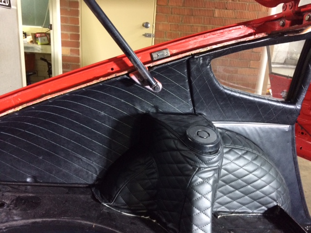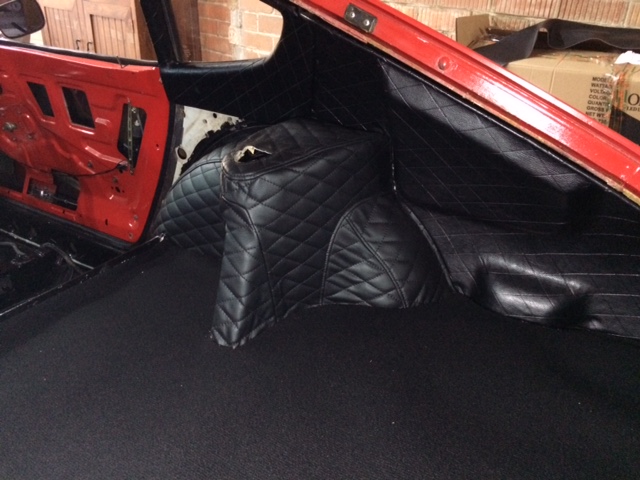 Update on interior: Got passenger seat finished and have started with interior. I'd plastic welded the multiple cracks in the rear garnishes, then upholstered it in the pressed vinyl - with plenty of heat and high tack spray glue it turned out amazing.